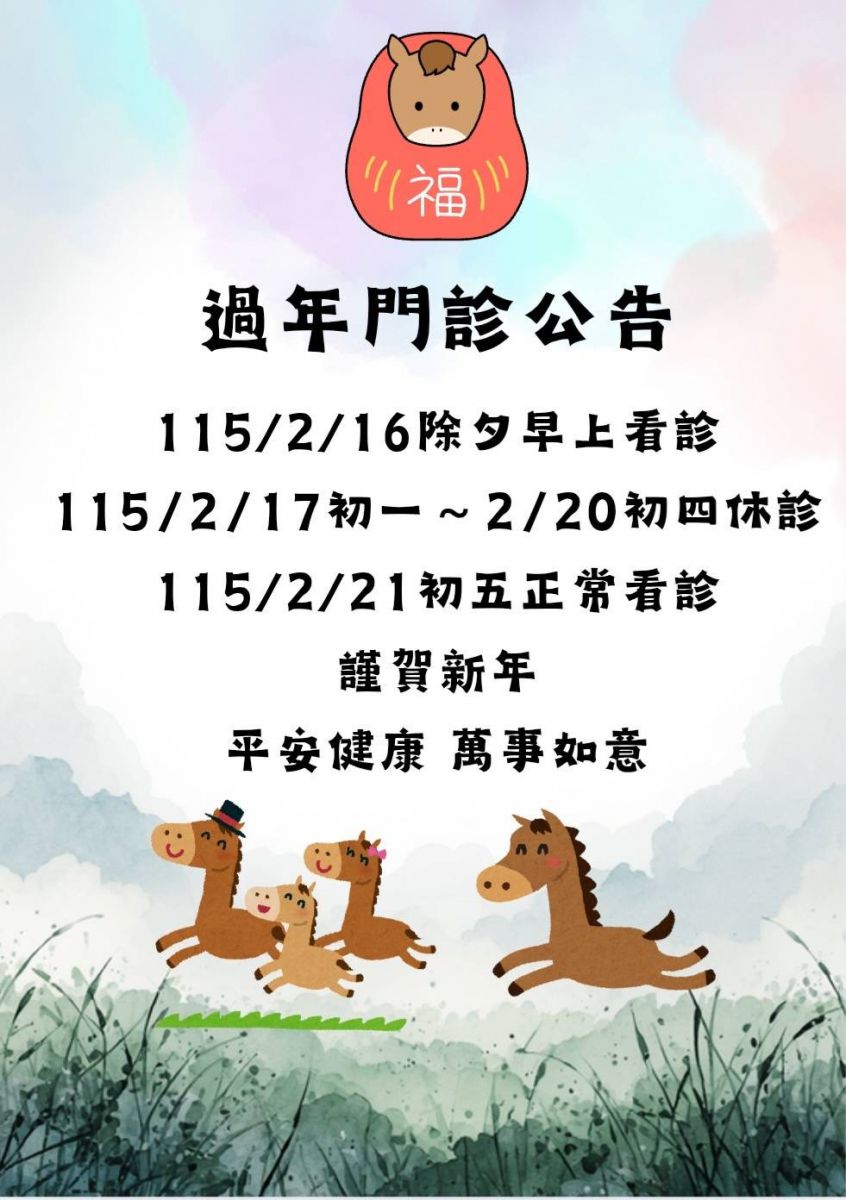 新年快樂~ 新年期間看診時間異動